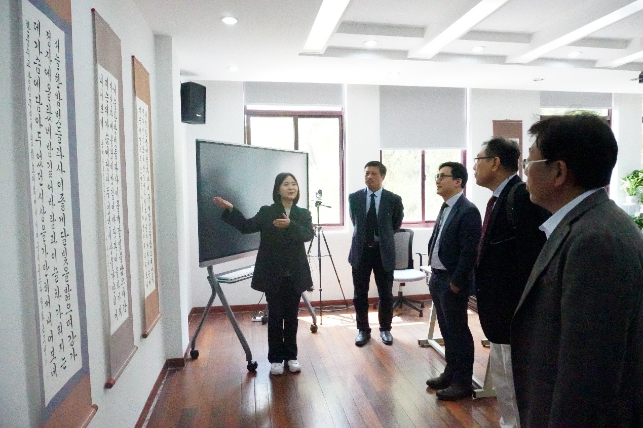 会上,双方进行了深入交流,为庆熙大学孔子学院的发展之路规划新航道,擘画新蓝图。会后,双方理事还参观了国际文化交流学院的庆熙大学孔子学院专用教室、庆熙大学书法作品展和“留学生中医文化体验园”。