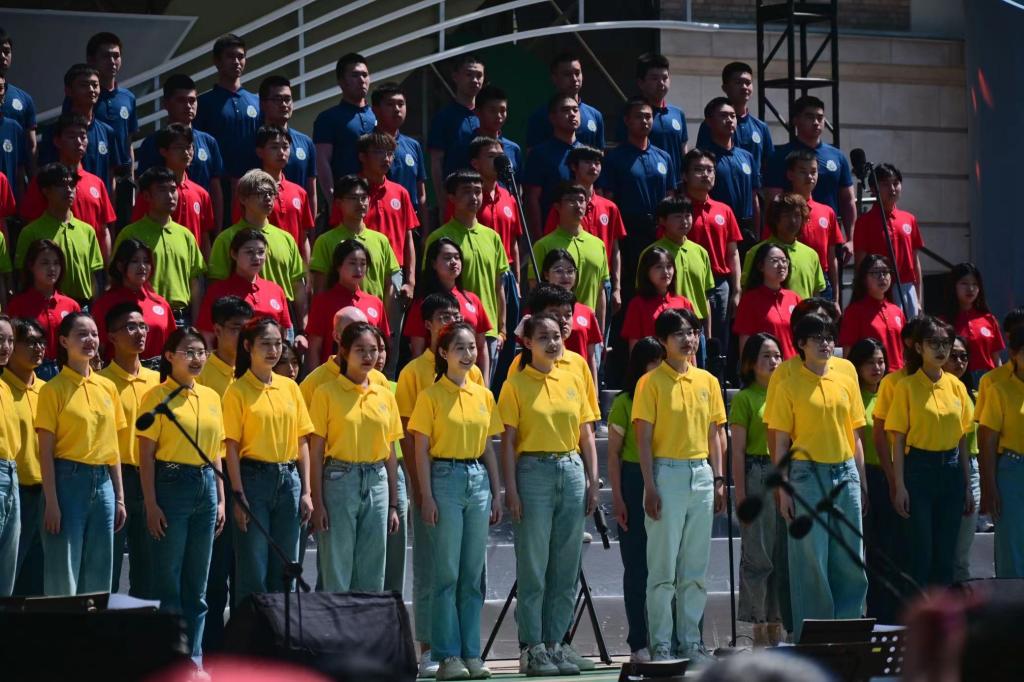 《星辰大海》这首作品最先展现出的是一幅深邃悠远的画面,娓娓道来,而后通过层次递进迸发的方式呈现出星辰大海般震撼人心的景象,带给听众磅礴的力量。悠扬的歌声传遍音乐广场,指引着青年学子回望党团百年,感慨于先辈敢为人先的魄力,畅想未来之路,赋予后辈敢想敢拼的精神。新时代青年应当牢记习近平总书记的嘱托,赓续红色血脉,坚定理想信念,展现青春力量,以梦为马,逐梦新百年,奔赴星辰大海的漫漫征途。
