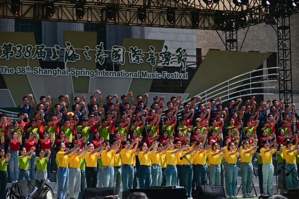 4月2日上午,第三十八届上海之春国际音乐节闭幕展演在上海城市草坪音乐广场拉开帷幕,我校学生合唱团受邀与上海另外3所高校合唱团在闭幕展演的第三篇章中共同登台演唱混声合唱歌曲《星辰大海》,同时与上海歌剧院等合唱团一同放声高歌谢幕大合唱《领航》与《歌唱祖国》。伴着明媚的春晖,本届上海之春国际音乐节在包含我校学生合唱团在内的各个专业机构合唱团及来自各行各业的市民合唱团昂扬深情的歌声中落下帷幕。
