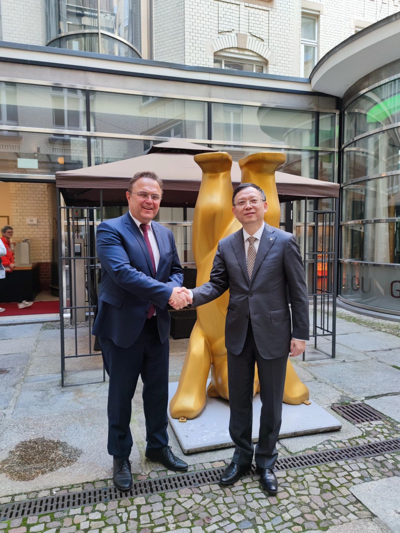在达姆施塔特工业大学,双方就在绿色发展和智能科技领域深化高层次人才培养和跨学科联合研究合作达成共识,并签署机械和汽车领域合作备忘录。在波恩大学,双方一致同意建立更多跨学科合作,实现人文和工程学科的互补,并举行了校际合作备忘录交换仪式。柏林工业大学举办“中德学院25周年庆典”和“同济日”活动,各方共同就中德学院新时期合作暨推进同济大学“对德合作2.0战略”签署合作协议。在德国外交部,教科研事务专员切切里(Vito Cecere)表示,外交部将继续积极支持同济大学与德国开展深入、广泛的合作。