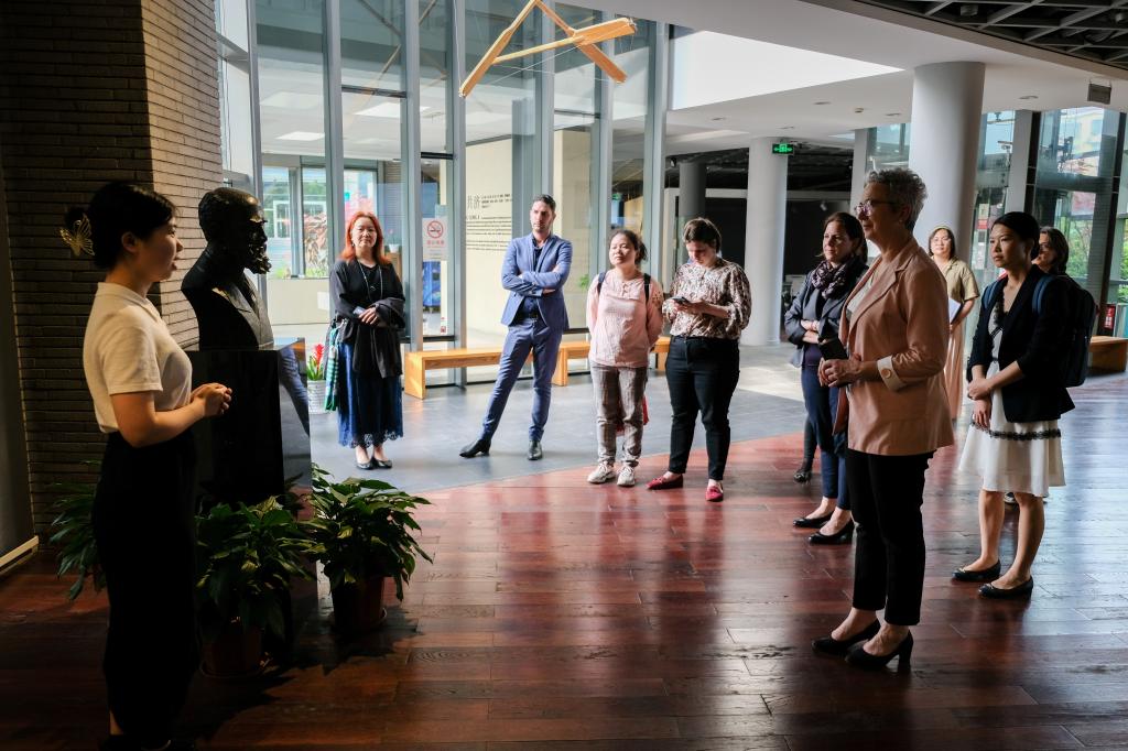 随后,代表团参观了正在中法中心展出的“跨越百年—里昂中法大学历史图片展”。该展览内容由新里昂中法大学(协会)、里昂第三大学、里昂市立图书馆等提供,Mireille BOSSY曾为展览开幕致辞。代表团还参观了我校的校史馆和博物馆。