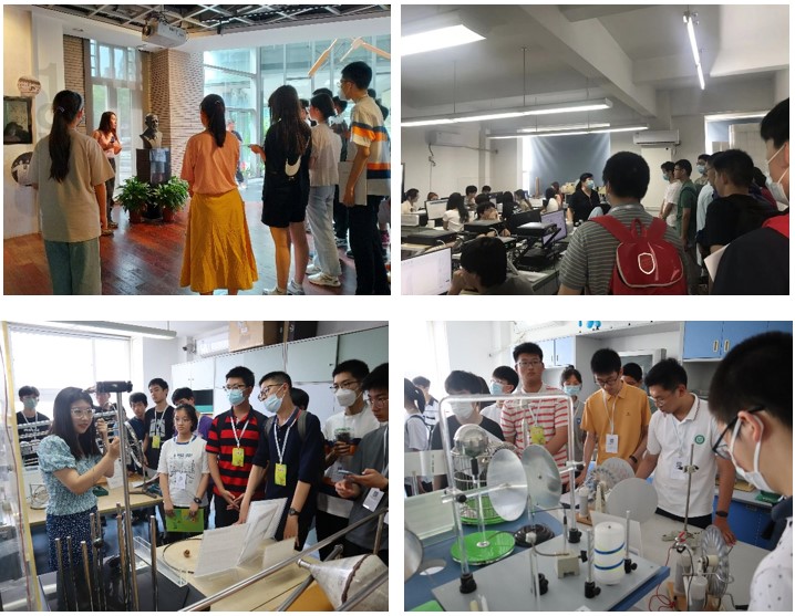 此外,同济物理工作站还安排了系列参观活动。在校史馆,高中生们认真聆听讲解员讲述同济大学的历史故事,观看珍贵历史图片,了解同济的校史,领略同济的文化,感受同济的氛围。在同济大学演示物理实验室,高中生们参观了力学、振动与波、电磁学和光学探索实验室,沉浸式体验了物理科学知识的应用。在近代物理实验室,同学们观摩了大学生正在进行的实验课程,了解了近几年诺贝尔物理学奖获得者研究的相关领域。
