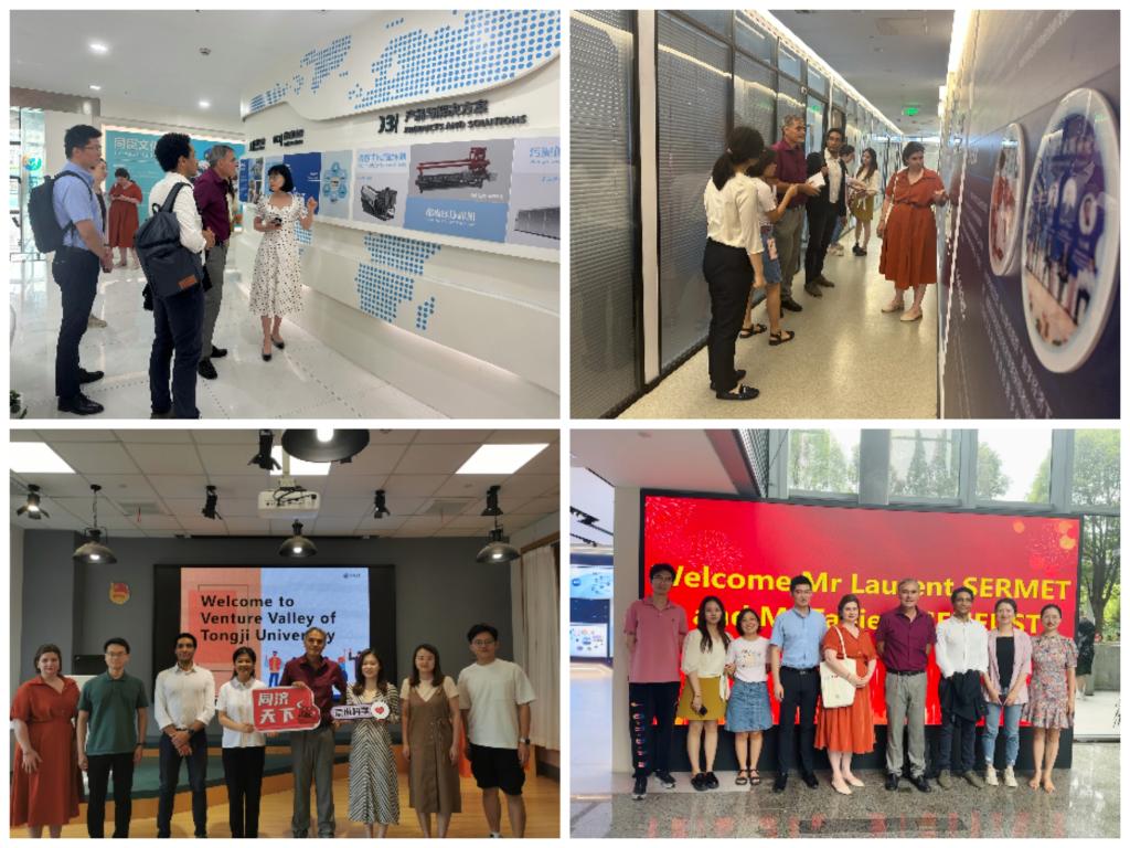 26日,塞尔梅特一行参观了同济大学创业谷、就业指导中心和同济大学科技园并听取相关介绍。他们对同济大学的创新创业教育印象深刻,表示希望通过法语学生暑期学校等项目,让更多东南亚高校和学生学习和了解同济大学的创新创业教育体系。随后,他们还参观了入驻同济大学科技园的上海区块链技术研究中心和同臣环保等创新企业。