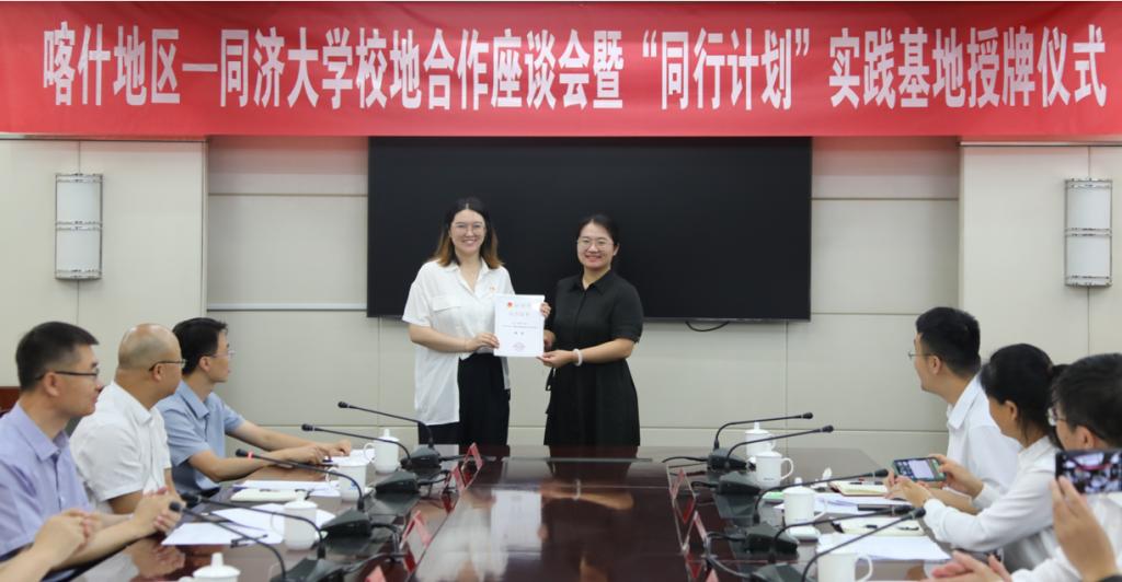 会上,“喀什地区-同济大学校地合作‘同行计划’暑期实践锻炼基地”揭牌,“同济大学‘同行计划’暑期实践锻炼同行驿站”揭牌。我校为地委组织部人才工作科干部颁发“同行计划”校外指导老师纪念证书。