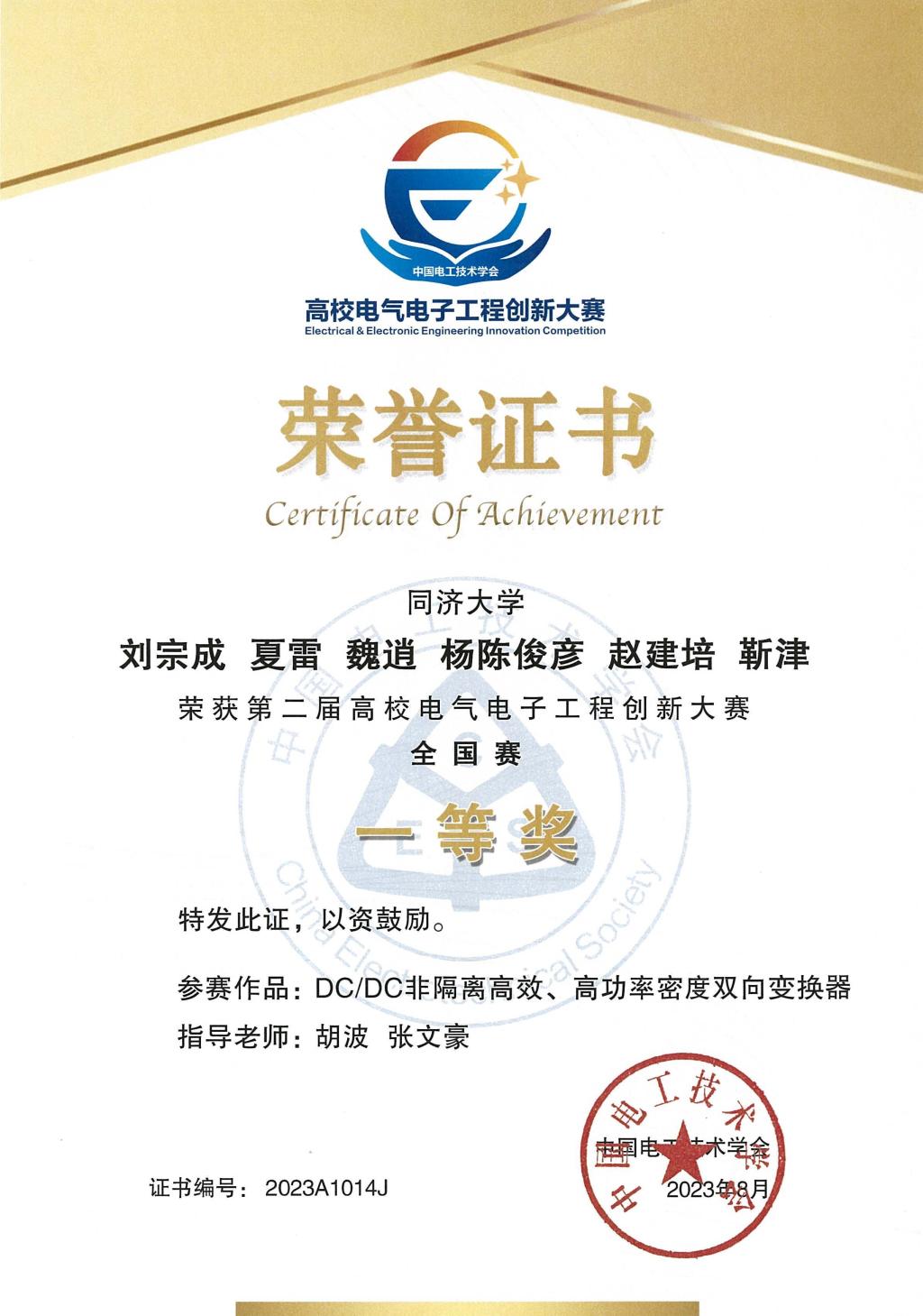 8月18日至20日,第二届高校电气电子工程创新大赛决赛在北京举行。由我校电子与信息工程学院刘宗成、夏雷、魏逍、杨陈俊彦、赵建培、靳津6名学生组成的参赛队伍,在学院胡波和张文豪两位老师的指导下,设计了DC/DC非隔离高效、高功率密度双向变换器,获得了决赛一等奖。