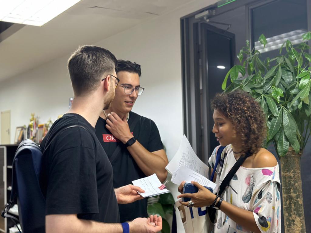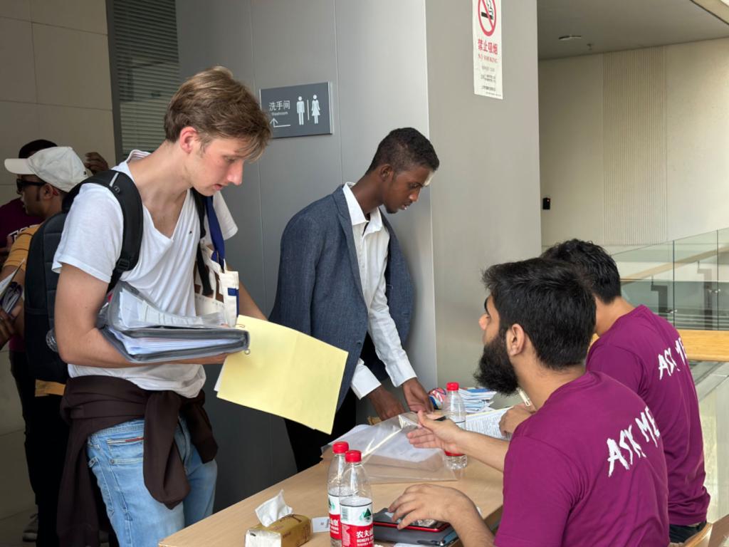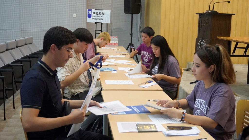 9月4日一大早,留学生办公室的老师和中外学生志愿者精心布置迎新场地,迎接即将加入同济大家庭的国际新生。阳光明媚的校园、宽敞明亮的教室、整齐码放的物资、热情专业的志愿者,一同静候新生的到来。随着迎新报到正式开始,留学生办公室的志愿者们身穿统一志愿衫,用热情的笑容、亲切的问候和贴心的服务欢迎来自世界各地的莘莘学子。