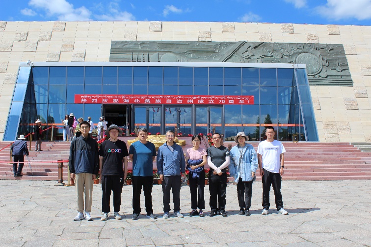 科考队员在青海省海晏县原子城纪念馆前合影