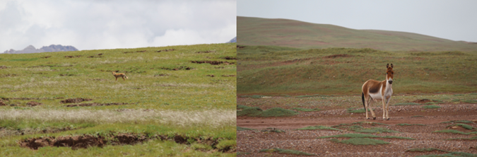 北麓河流域内见到的藏狐和藏野驴