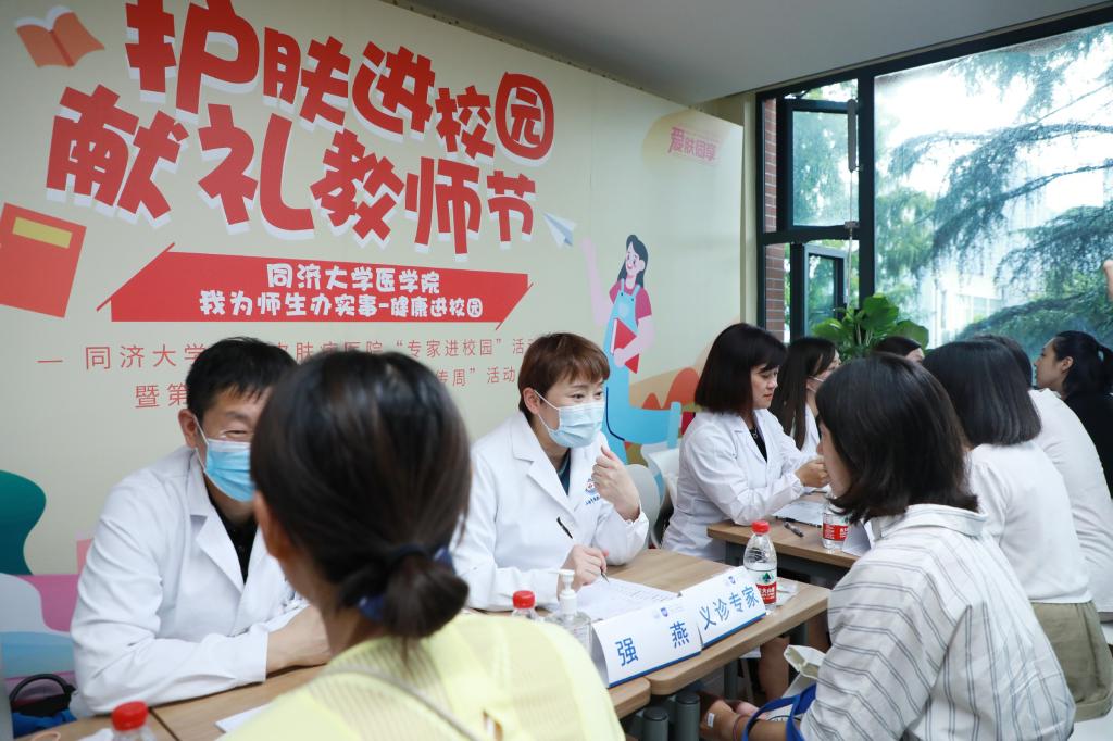 9月12日下午,医学院在沪西校区举办“我为师生办实事”健康进校园系列活动——同济大学附属皮肤病医院护肤科普及专家义诊活动。附属皮肤病医院、发展规划与学科建设部、沪西校区管委办、医学院负责人等出席活动。