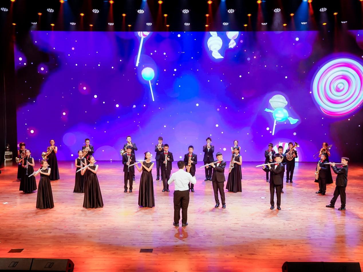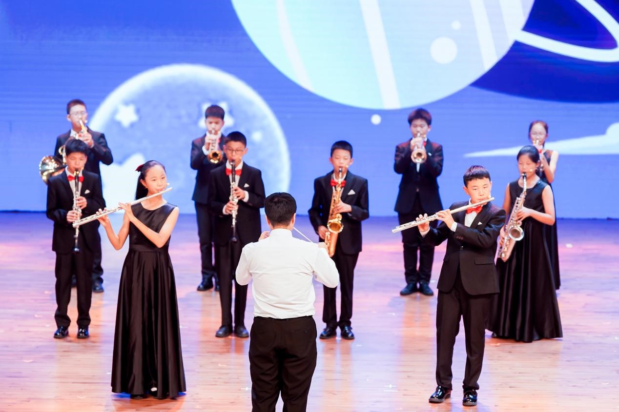同济大学嘉定基础教育集团筑梦管乐团带来管乐合奏《闲聊波尔卡》,演员主要由同济大学附属中小学的四至七年级学生组成。乐曲营造出欢快而幽默的气氛,维也纳舞会上妇女们凑在一起说长道短的场景仿佛跃然眼前,引人入胜。