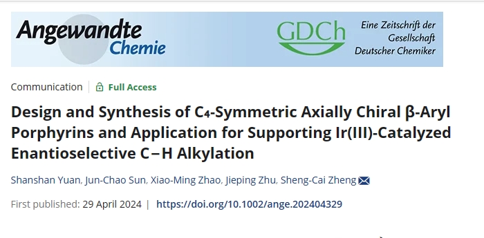 化学科学与工程学院郑生财和赵晓明团队开发出原创C₄-对称轴手性β-芳基卟啉,研究成果发表于《德国应用化学》