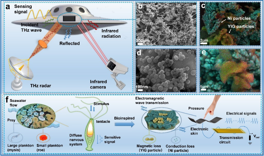 图1 基于天然珊瑚的智能感知和电磁隐身一体化复合材料的仿生机理
