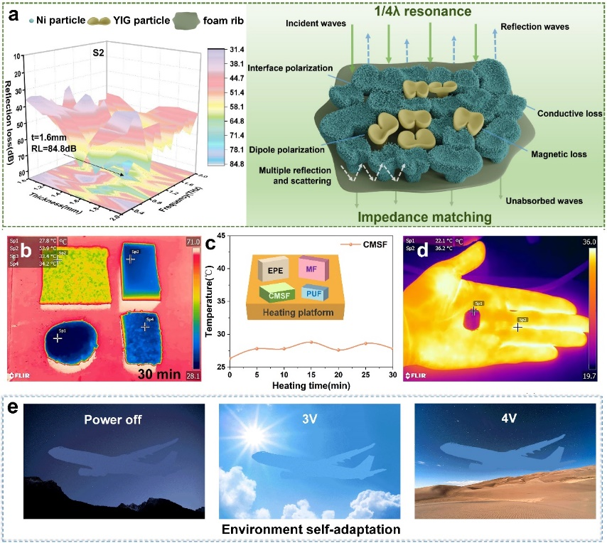 该研究工作在复合材料自我感知能力、自我防护能力和适时应变能力方面取得了重要进展,为装备自主感知和智能电磁防护开辟了新方向,也为未来可穿戴设备、智能装备、健康监测等领域的研发提供了理论支撑。