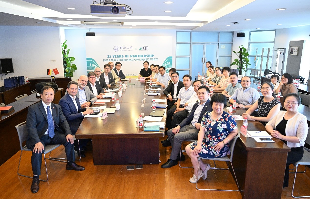 7月8日,同济大学与德国卡尔斯鲁厄理工大学(KIT)伙伴关系建立25周年庆典在四平路校区中德大楼举行。卡尔斯鲁厄理工大学副校长托马斯·赫尔特(Thomas Hirth)率代表团访问同济大学并参加活动。副校长娄永琪及来自校内环境、机械、软件、电信、汽车、德国研究、图书馆等多个学科领域和部门的代表共同出席了庆典。