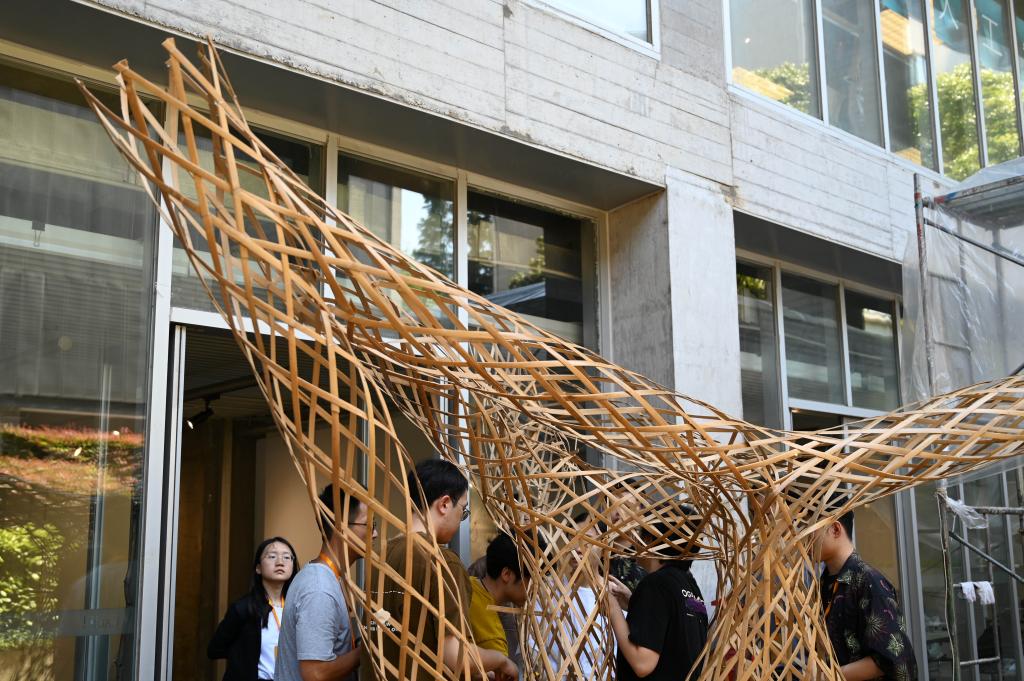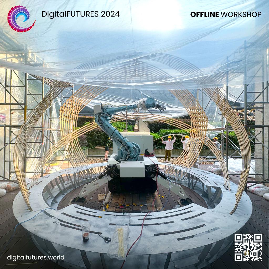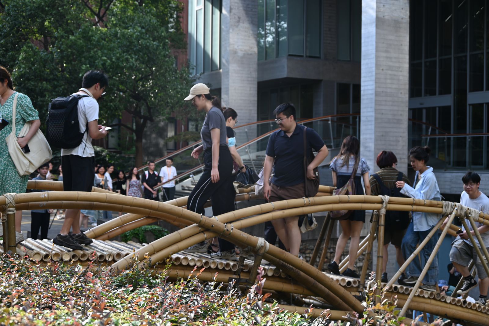近日,建筑与城市规划学院前的一座竹结构桥梁吸引了众多目光,这正是2024年“数字未来”(DigitalFUTURES)工作营的标志性成果之一。此次工作营以“众脑、同驱与共存:探索一种新型建筑学”为主题,通过智能建造工作营、AI智能建造论坛以及成果展览等活动,为大家带来了一场关于数字设计与建造前沿成果的盛宴。