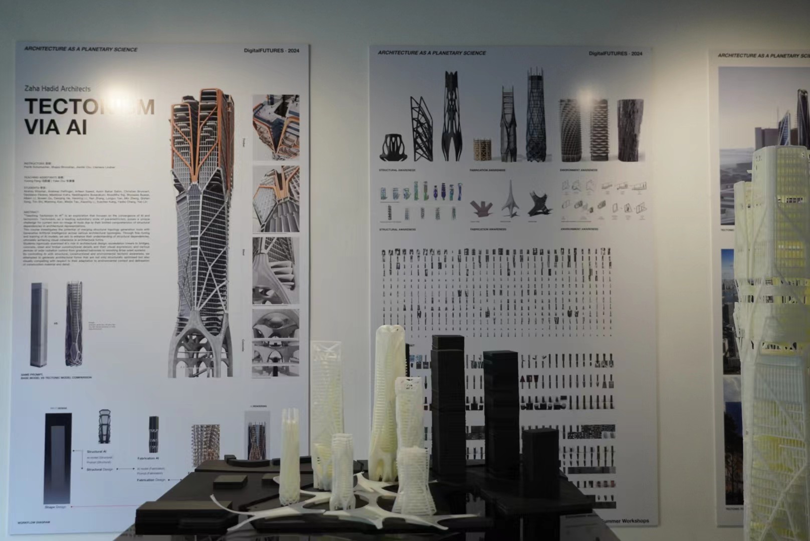 此外,展览还特别呈现了机器人竹编、重塑榫卯等具有传统智慧与现代技术结合的作品,以及生成式AI艺术实践、环境助推等创新设计。这些成果不仅展示了学员们的才华与创意,也体现了同济大学建筑与城市规划学院在数字建筑领域的领先地位。