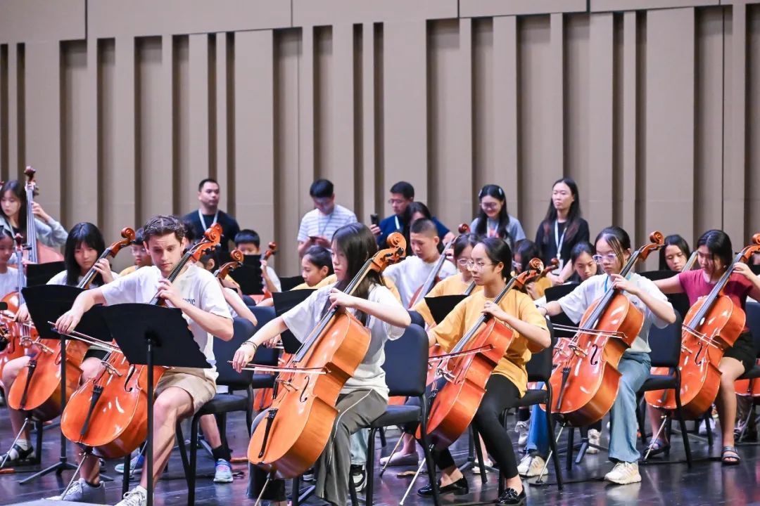 7月1日起,营员们在指挥Yunior Lopez的专业指导下,开始了充满热情与活力的乐团排练。资深演奏家Leonard Tsang、Susan J Kim和Andy Smith分别对小提琴和大提琴声部进行了细致入微的指导,确保了排练的高效与专业。来自同济大学、山东大学和美国的32位助教助演学生时刻陪伴在乐团成员身边,确保每位营员都能跟上排练节奏。夏令营期间,营员们参与了丰富多彩的趣味课程,体验了中国传统文化与现代智慧的结合。