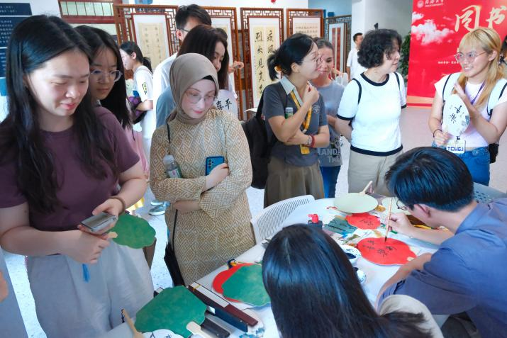 在第27届全国推广普通话宣传周来临之际,9月13日,“同书中华”同济大学师生书法作品展在国豪书院南门厅开幕。校党委统战部、国豪书院、党委学(研)工部、本科生院、国际文化交流学院相关负责人,上海市书法家协会会员、同济大学中国书画协会副会长蒋荻,部分获奖师生代表,同济大学书法协会会员,民族学生预科班学生及国际留学生、港澳台学生代表等出席开幕式。