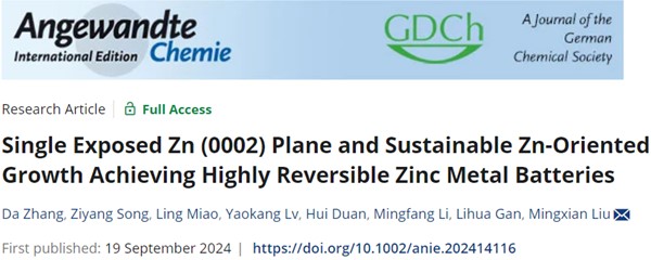 化学科学与工程学院刘明贤团队制备高度可逆的锌离子电池材料,研究成果发表于《德国应用化学》