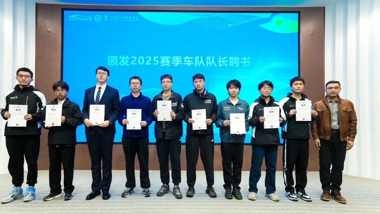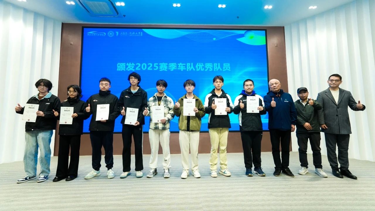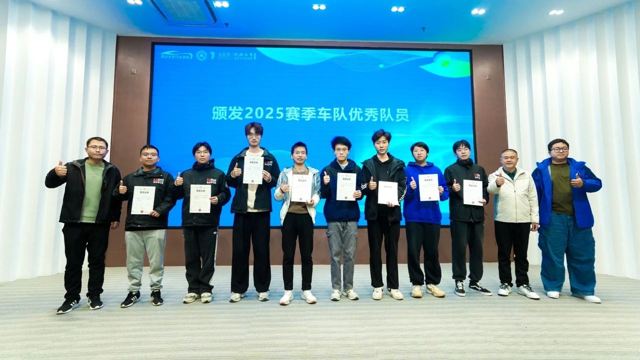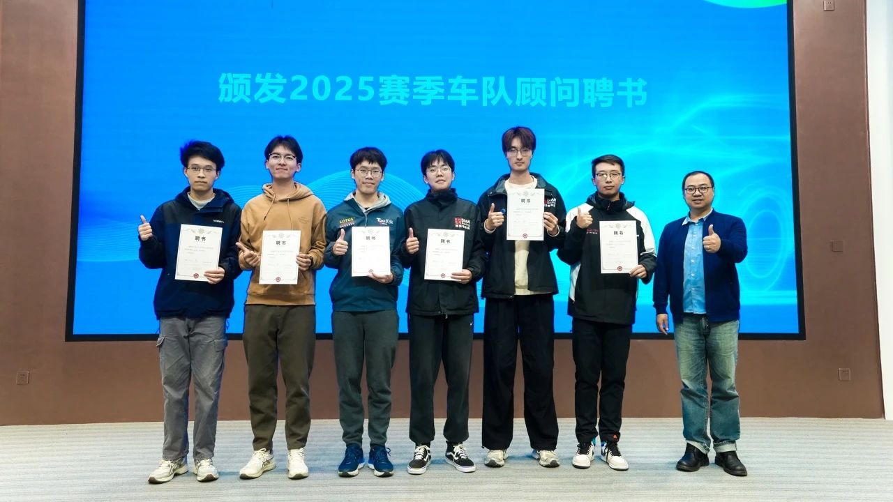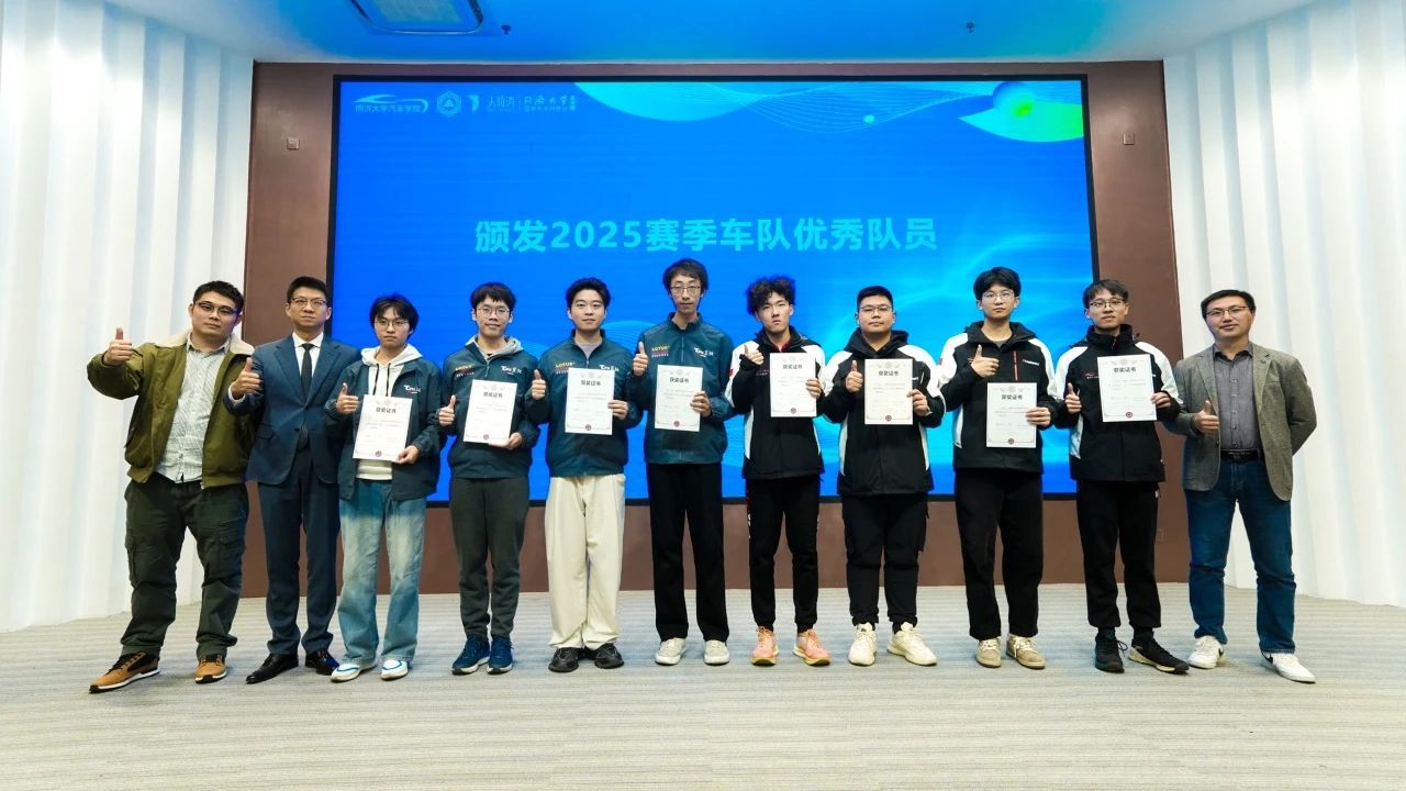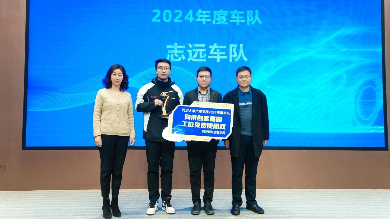 盛典上,校党委学研工部、嘉定校区管委办、同济科技园嘉定园、汽车学院负责人为本年度在学术科研、学科竞赛、科创服务中表现突出的同学颁发了“科创之星”证书和奖杯,表彰他们在科技创新领域的优异表现;为年度车队——志远车队颁发奖杯,作为本年度协办单位,同济科技园嘉定分园为年度车队提供众创空间一年免费使用权;为2025赛季各车队队长、顾问颁发聘书。来自上海瀛之杰汽车信息技术有限公司、上海汉邦联航激光科技有限公司、上海嘉利扬科技发展有限公司、猛禽电子科技有限公司、上海济美动力科技有限公司、上海青浦汽车检测修理中心有限公司、上海同驭汽车科技有限公司、先临三维科技股份有限公司、艾仕得涂料系统(上海)有限公司的车队赞助商代表为2024年度优秀车队队员颁发证书。