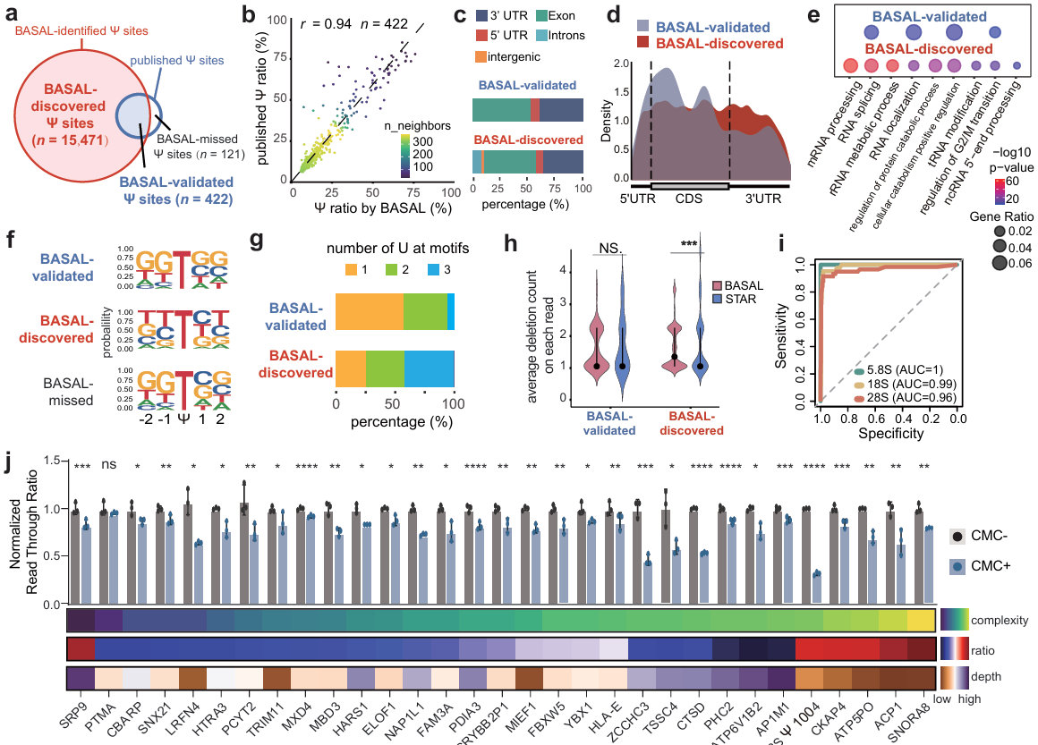 图2、BASAL识别大量未被已有工具发现的RNA假尿嘧啶(Ψ)位点