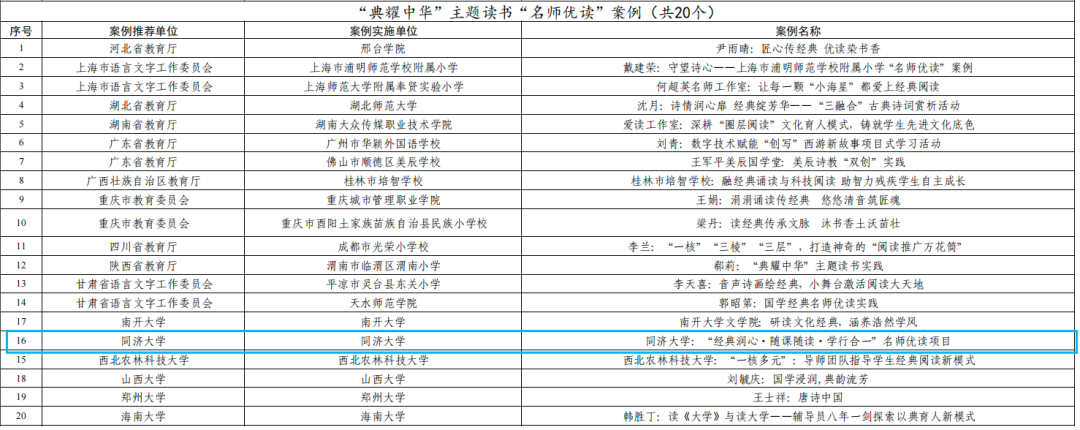 同济大学“经典润心·随课随读·学行合一”名师优读项目获评国家语委创新实践案例