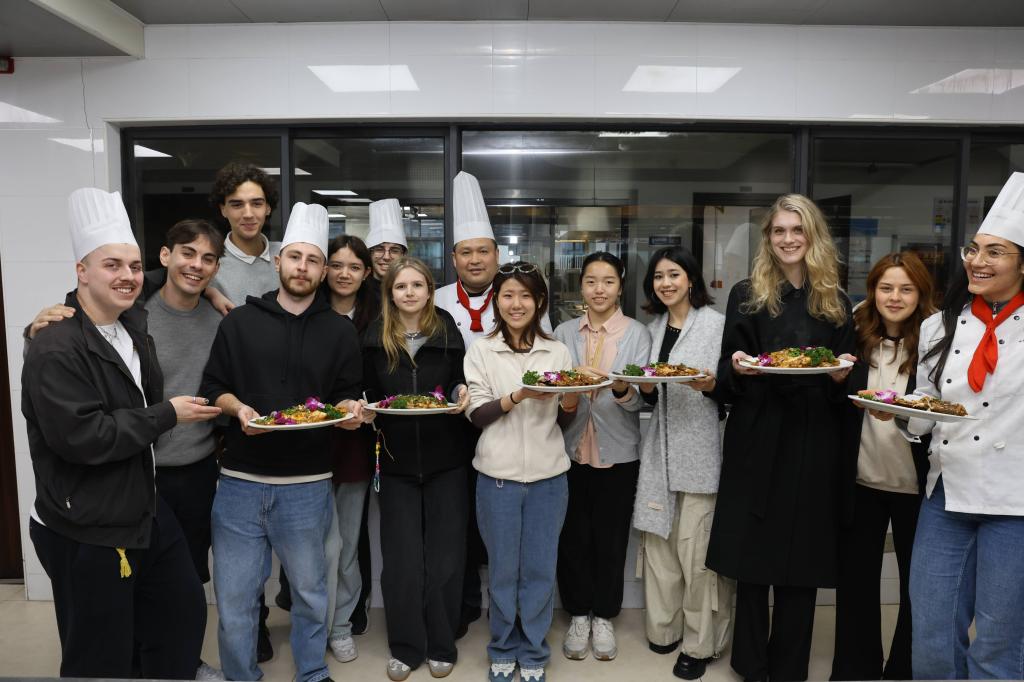 9日,国际学生们前往黄山学院,与学院师生进行学术交流,深入学习中国传统文化。在茶艺课上,茶艺师为国际学生们详细讲解了中国茶道的精髓,并演示了泡茶的完整流程,包括温杯、投茶、注水、出汤等步骤,以及优雅的泡茶手势。国际学生们认真观摩,并亲自动手尝试,在茶香袅袅中感受着中国茶文化的宁静与雅致。随后,国际学生们还参与了徽菜制作体验活动。在厨师的指导下,学生们学习了徽州传统名菜——臭鳜鱼的制作方法。从食材的选择到烹饪的技巧,学生们认真学习,并亲手参与制作。虽然臭鳜鱼的味道独特,但大家纷纷表示,这是一次难忘的美食体验,让他们对徽州饮食文化有了更深刻的理解。