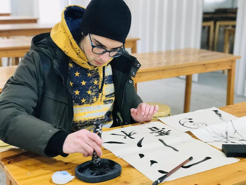 8日上午,国际学生们前往黟县,探访百年老字号——老胡开文墨场。在非遗传承人的指导下,学生们亲手体验了徽墨和歙砚的制作过程,学习了徽墨描金技艺,尝试了砚台刻画,被中华传统文化的博大精深和匠人精神的世代传承所打动。