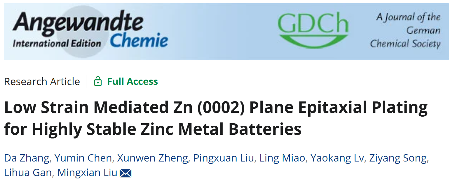 化学科学与工程学院刘明贤团队通过低应力介导锌(0002)晶面暴露实现高稳定锌金属电池,成果发表于《德国应用化学》