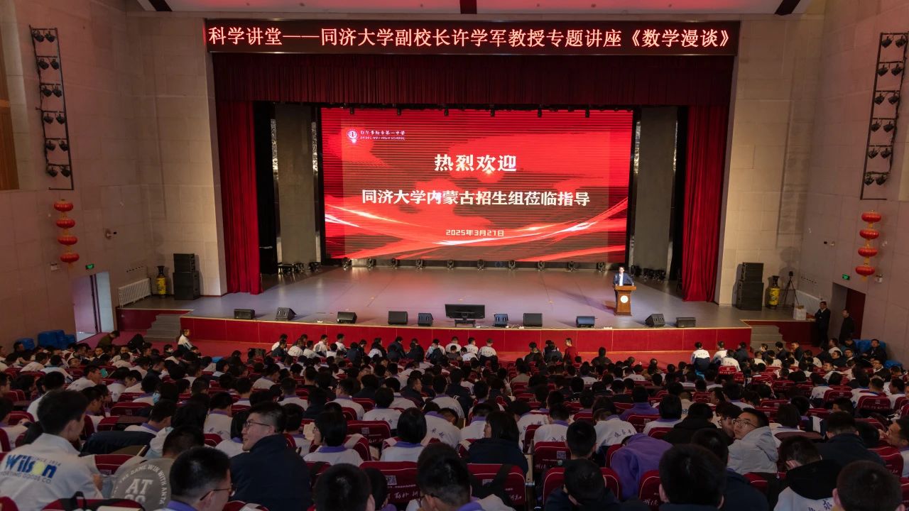 3月26日下午,许学军一行抵达呼和浩特第二中学,授予其“卓越生源基地”牌匾并正式签署“苗圃计划”合作协议。呼市二中校长张瑞清、副校长李海军等校领导出席交流活动。许学军作了题为《选择同济的八个理由》的专题报告,结合同济大学“转型之路”,对同济大学拔尖创新人才培养工作进行了介绍,向考生和家长展示同济大学在人工智能赋能方面的新形象、新内涵、新举措、新动向。招生组负责人介绍了同济招生政策、内蒙古在同济的学子发展情况、大中学衔接、优秀拔尖人才培养等方面的详细情况。