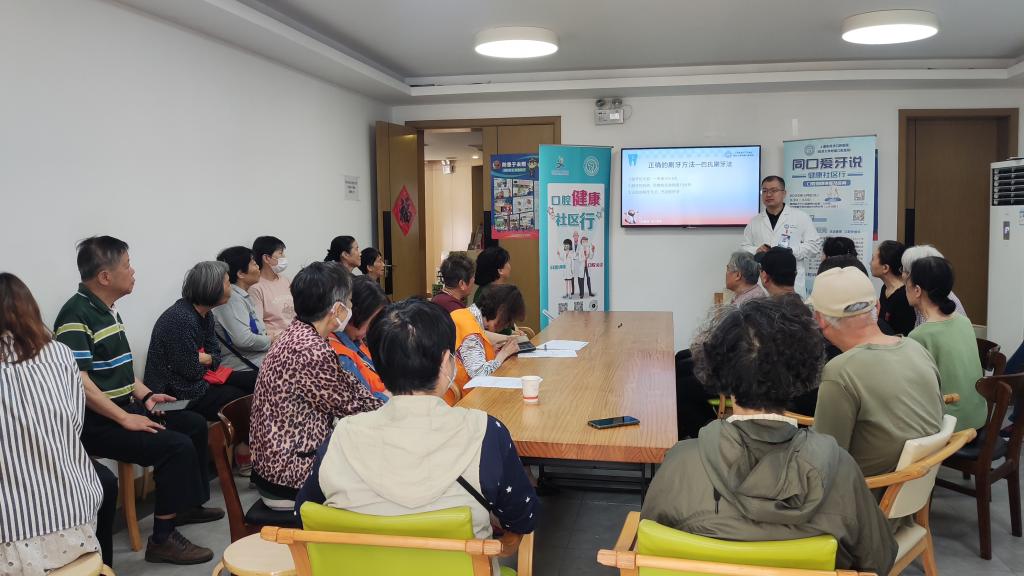 5月29日,同济大学附属口腔医院到静安区大宁社区服务中心举办“同口爱牙说”科普讲堂。医院的医生们为社区居民带来了《口腔问题早知道》和《口腔分诊知多少》的科普讲座。
