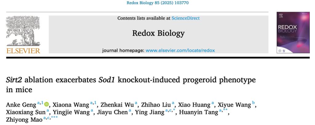 生命科学与技术学院毛志勇团队揭示Sirt2缺失加速氧化应激缺陷导致的早衰表型出现,成果发表于《氧化还原生物学》