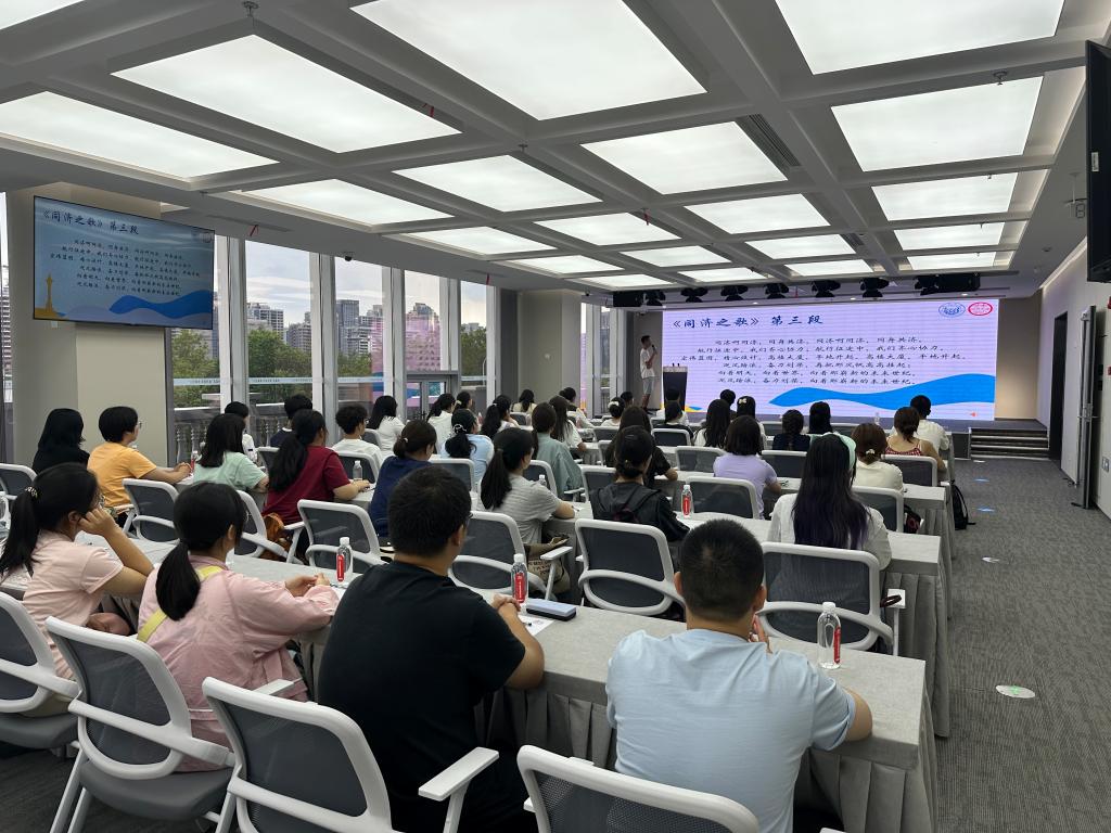 在两天时间里,同济大学学生艺术总团中的学生合唱团、学生音乐剧团、学生民乐团、学生舞蹈团、学生主持人团、民族学生艺术团和艺术同济融媒体中心的成员们齐心协力,深入到各个学院,将《同济之歌》的每一个音符、每一句歌词,耐心细致地传授给2025级新生们。从歌词的含义到旋律的起伏,从发声的技巧到情感的表达,他们耐心细致地讲解示范,只为让每一位新同学都能唱出心中的同济情。活动现场气氛热烈,同学们积极互动,认真学习。在艺术总团学生的带领下,大家从最初的陌生到逐渐熟悉,再到最后齐声高唱,歌声一次比一次洪亮,眼神一次比一次坚定。