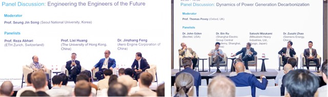 在接下来的两场圆桌论坛中,首尔大学Seung Jin Song教授、苏黎世联邦理工学院Reza Abhari教授、香港大学黄立锡教授、中国航发商用航空发动机有限责任公司冯锦璋博士等围绕“Engineering the Engineers of the Future”,深入探讨了未来工程师的核心素养与跨学科培养路径、工程教育如何适应快速迭代的技术变革、产学研协同育人机制的创新实践等关键话题。牛津大学Thomas Povey教授、美国柏克德工程公司(Bechtel)John Gülen博士、上海电气集团股份有限公司茹斌博士、日本三菱重工业股份有限公司Satoshi Mizukami博士、西门子能源有限公司赵作智博士等围绕“Dynamics of Power Generation Decarbonization”,聚焦企业在能源转型中的技术创新路径、低碳化战略的落地挑战、多能互补系统的构建与优化,以及全球合作推动电力领域碳中和的实现模式。