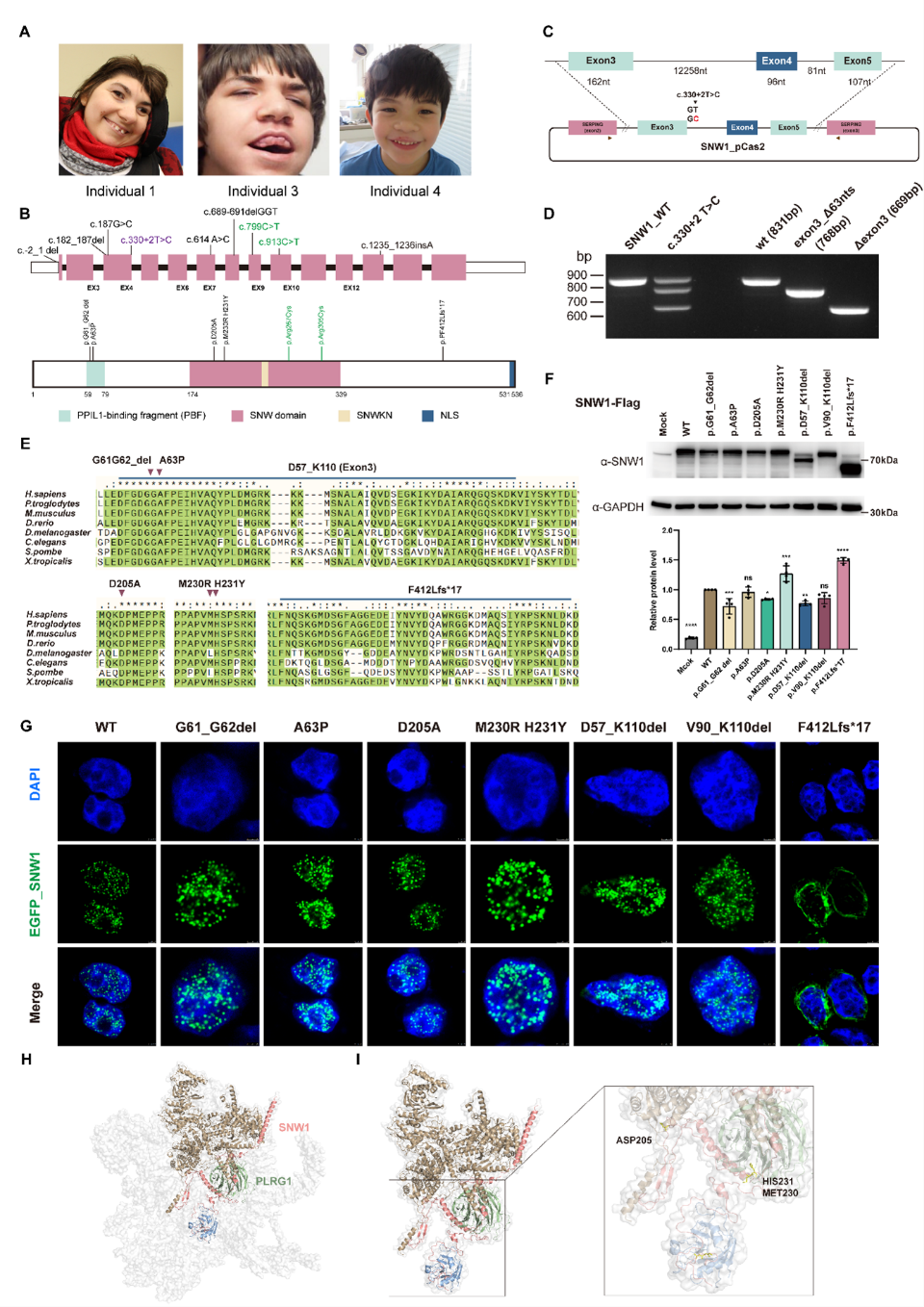 图1.SNW1基因突变会导致小头畸形,并损害SNW1在人体内的正常功能