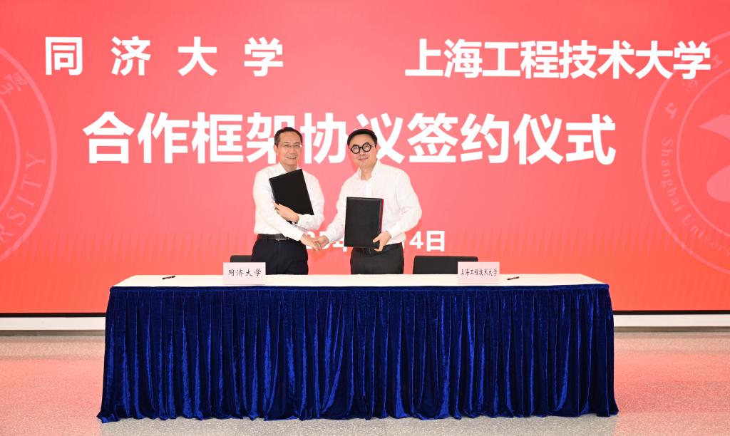 9月14日,同济大学与上海工程技术大学合作框架协议签约仪式在同济大学举行。同济大学校长、中国科学院院士杨金龙,上海工程技术大学校长娄永琪分别代表两校签约,上海工程技术大学党委书记李江出席会议并讲话。同济大学副校长李翔宁、上海工程技术大学副校长夏春明等参加。