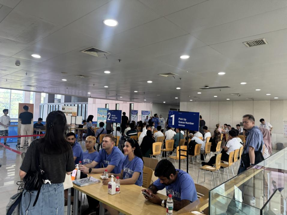 迎新现场,老师与志愿者们热情迎接每一位远道而来的新同学。多语种的引导、贴心的服务、温暖的笑容,帮助初来乍到的国际学生迅速融入新环境。校园里,青春洋溢的笑脸与缤纷多彩的行囊交织在一起,汇聚成一幅多元文化共融的动人图景。今年,国际学生迎新工作不仅注重效率,更强调人文关怀与文化体验。学校全面升级数智化服务流程,让新生能够快速完成注册、体检以及银行卡与校园卡办理。绿色环保理念贯穿始终,无纸化录取与电子化手续已成为新生入学的“第一课”,也体现了同济对可持续发展的承诺。