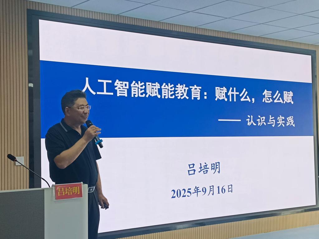 在为2024、2025级“同济实验班”全体学生主讲的开学第一课上,吕培明借“人工智能赋能教育:赋什么,怎么赋——认识与实践”这一主题,基于党委书记郑庆华院士在同济大学主讲的关于人工智能赋能教育系列报告的内容,为师生们讲授了一堂精彩的开学课。