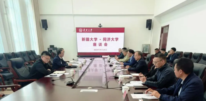 9月15日,朱小杰一行赴新疆大学慰问挂职干部并参加同济大学—新疆大学座谈会。新疆维吾尔自治区教育厅党组成员、副厅长许高勇出席座谈。会上,新疆大学党委副书记、校长马新宾回顾了两校合作历程,并期待未来两校在高层次人才引育、人工智能赋能专业建设、研究生联合培养等领域,进一步深化合作层次、拓展合作空间。朱小杰表示,新疆是我国向西开放的桥头堡,在基础设施建设和区域互联互通等领域拥有巨大发展潜力,与同济大学土木工程、城乡规划等优势学科高度契合,希望两校在深度总结对口支援工作经验的基础上,进一步深化既有合作领域,拓展人工智能与数字化创新等新兴交叉领域合作,以更紧密的协作不断巩固提升合作质量,为服务国家重大战略、推动区域经济社会发展贡献新力量。许高勇表示,同济大学在高水平师资队伍建设、学科专业与科研平台建设、国际交流合作等方面进一步加大支援力度,助力新疆大学突出优势特色、提升办学水平,推动“双一流”建设不断迈上新台阶。
