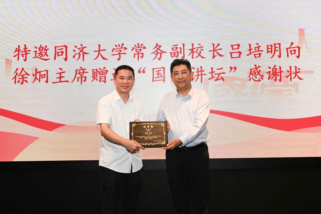 徐炯、王为松、吕培明与学生代表共同启动“悦见人文”走进同济大学系列活动暨“悦见人文×国豪讲坛”联名品牌。吕培明向徐炯赠送了“悦见人文×国豪讲坛”感谢状。