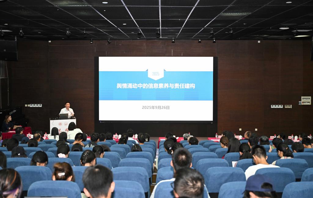 报告中,徐炯通过大量鲜活案例,阐释了网络传播的内在规律,剖析了舆情生成的机理,指出互联网是亿万公众获取信息、交流信息的大平台,不仅影响着人们的求知途径、思维方式和价值观念,还影响着人们对国家、对社会、对工作、对人生的认知和看法。他还与同学们分享了如何在纷繁复杂的互联网世界中跳出认知偏差、信息茧房,看清舆论背后的意识形态博弈,追求正确的求知途径、思维方式、价值观念,鼓励大家努力成长为堪当民族复兴重任的时代新人。