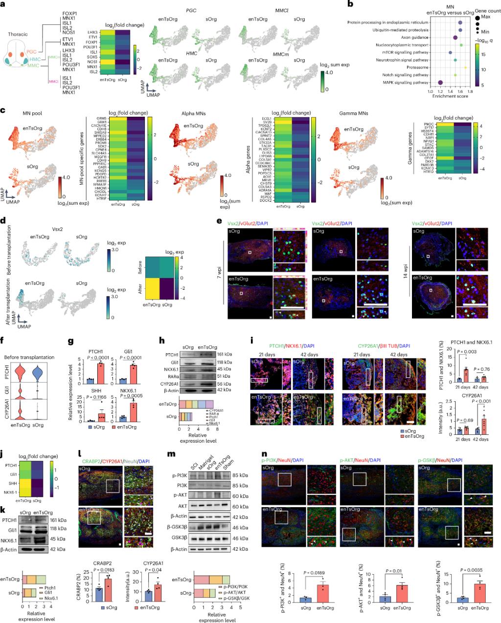 图4.移植的enTsOrg促进了恢复运动功能的关键神经元的产生和功能化