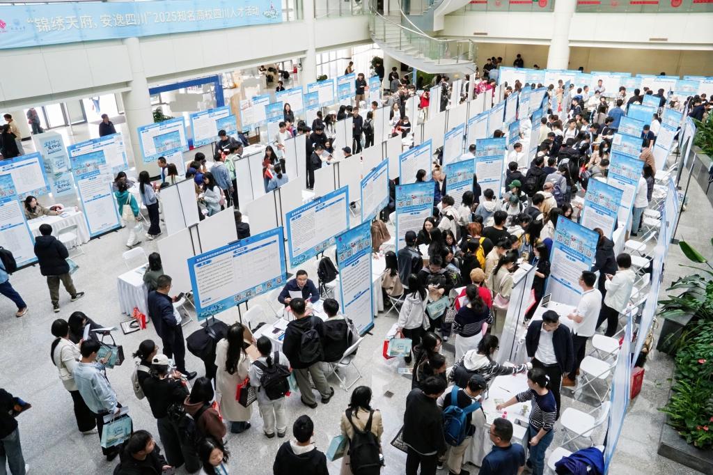 双选会上,四川轻化工大学、四川大学华西第二医院、蜀道集团、华西集团、五粮液集团等41家重点单位携1.5万余个岗位来校引才。活动现场气氛热烈,各重点单位展位前人头攒动,学子们积极与招聘人员交流,详细了解岗位信息、职业发展路径以及四川的人才政策等情况。不少学生表示,四川丰富的发展机遇、宜居的生活环境和优厚的人才政策对他们具有很大的吸引力,他们将认真考虑赴川发展,为四川的经济社会建设贡献自己的力量。据统计,活动当日共接收简历824份,其中硕士及以上的占比83.5%,达成初步就业意向83人。