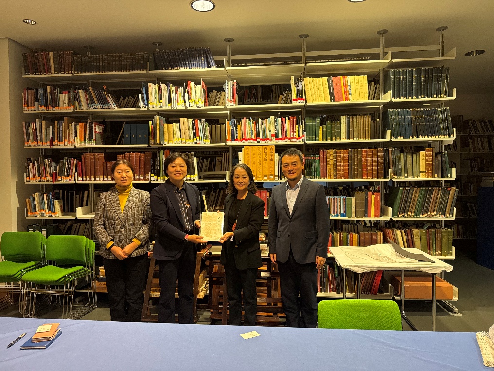 10月29日,代表团与大英博物馆中国资源专家王每心、中国早期藏品部负责人刘睿良深入交流。双方回顾了大英博物馆与同济大学在玉石文化领域的合作历程,重点探讨中华优秀传统文化传承与藏品管理机制,并就联合开展玉石、园林及文化产业研究达成共识。曹静代表同济大学向博物馆捐赠中、英、德三语版《说园》,该著作将被大英博物馆图书室永久收藏,成为文化传播的重要载体。
