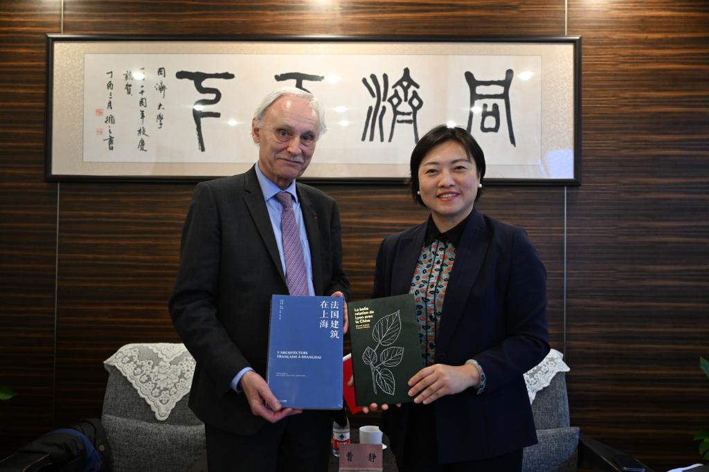 11月11日,新中法大学副主席阿兰·拉巴特(Alain Labat)率代表团访问同济大学,与校党委副书记曹静举行工作会谈。