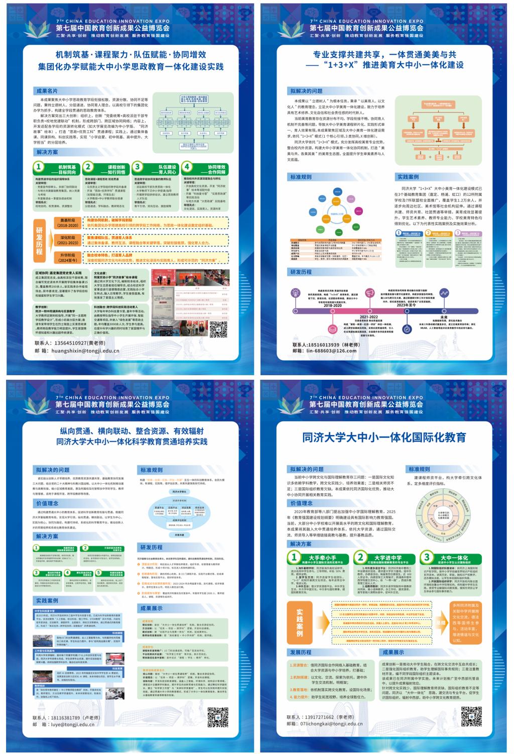 第七届中国教育创新成果公益博览会(以下简称“教博会”)于11月15日至17日在广东珠海国际会展中心举行。本届教博会以“汇聚·共享·创新——推动教育创新发展,服务教育强国建设”为主题,集结全国教育领先企业、教育单位、社会组织、公益机构共同参会。同济大学大中学思政一体化、科学教育贯通培养、美育教育和国际化教育一体化4项成果入选本届教博会,并集中参展。