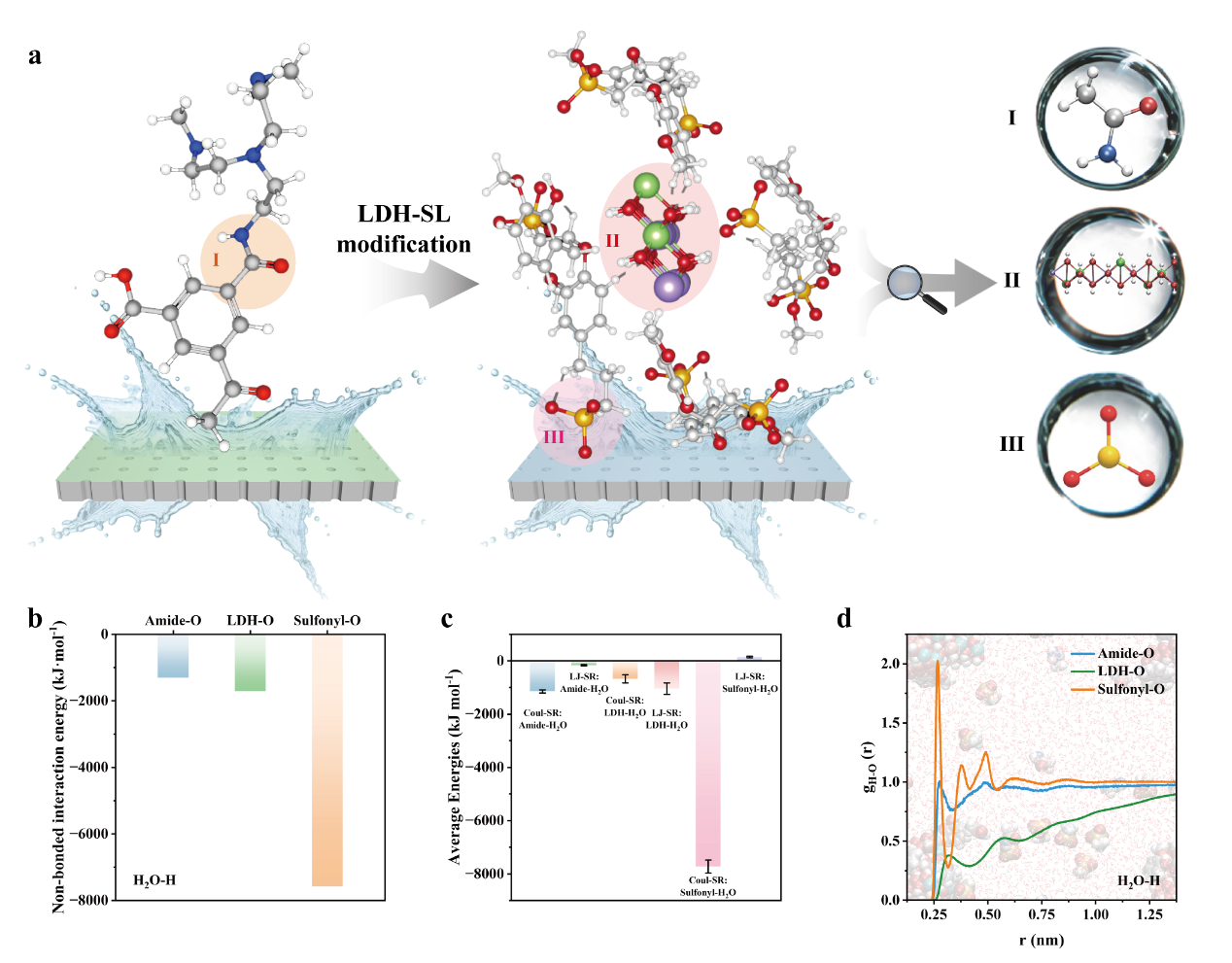 图2. LDH-SL纳米填料在水传输中的机制研究