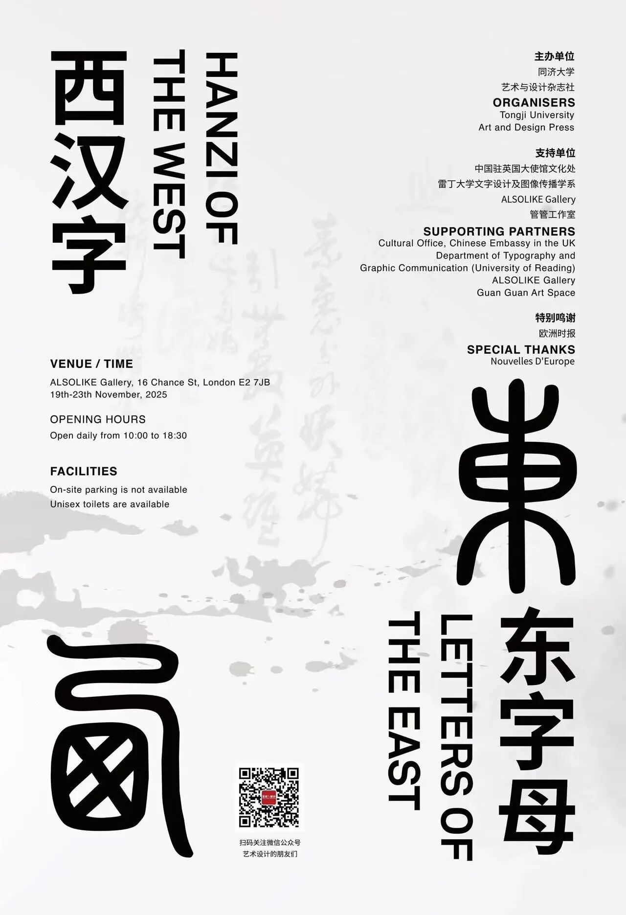汉字,作为中华文明绵延千年的重要载体,既深深植根于中国人的日常生活,记录着烟火气里的情感与记忆,又在信息化变革的浪潮中不断突破边界,以全新的形态展现出蓬勃生机,成为连接中华文明与世界文明的重要交汇点。11月22日,由同济大学和艺术与设计杂志社联合主办的“西汉字·东字母”专题展在伦敦Alsolike Gallery正式开幕。现场集中展示了百余件兼具历史文化底蕴与创新设计理念的原创汉字主题作品,涵盖书籍装帧、特色服饰、艺术装置及创意文创产品等多个品类,吸引了中英政商文化界代表齐聚一堂,共襄中英文化交流盛事。