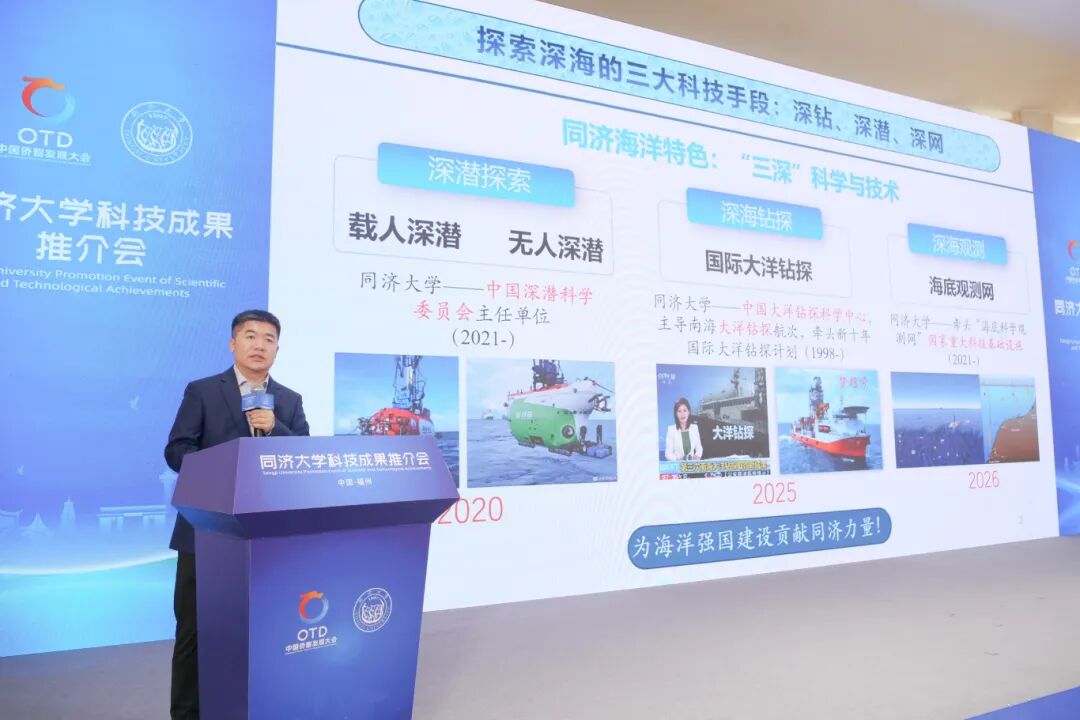 12月2日,作为本届大会的重要组成部分,由同济大学主办,福建省侨联、福建省科协、福州市人民政府支持的“同心奋进·侨创未来”同济大学科技成果推介会在福州海峡国际会展中心举行。福建省政府党组成员康涛,同济大学党委常务副书记朱小杰致辞,副校长、中国工程院院士童小华介绍同济大学科研情况。
