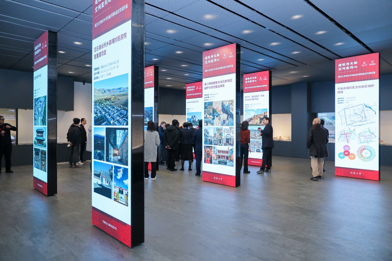 研讨会期间,与会嘉宾还参观了以移动式多媒体屏幕呈现的“建筑传文脉,空间聚同心——同济大学铸牢中华民族共同体意识实践作品展”。展览集中呈现了同济大学在西藏、新疆、青海、云南、四川、山西、福建、海南等地区完成的28项建筑工程、规划设计、遗产保护项目。